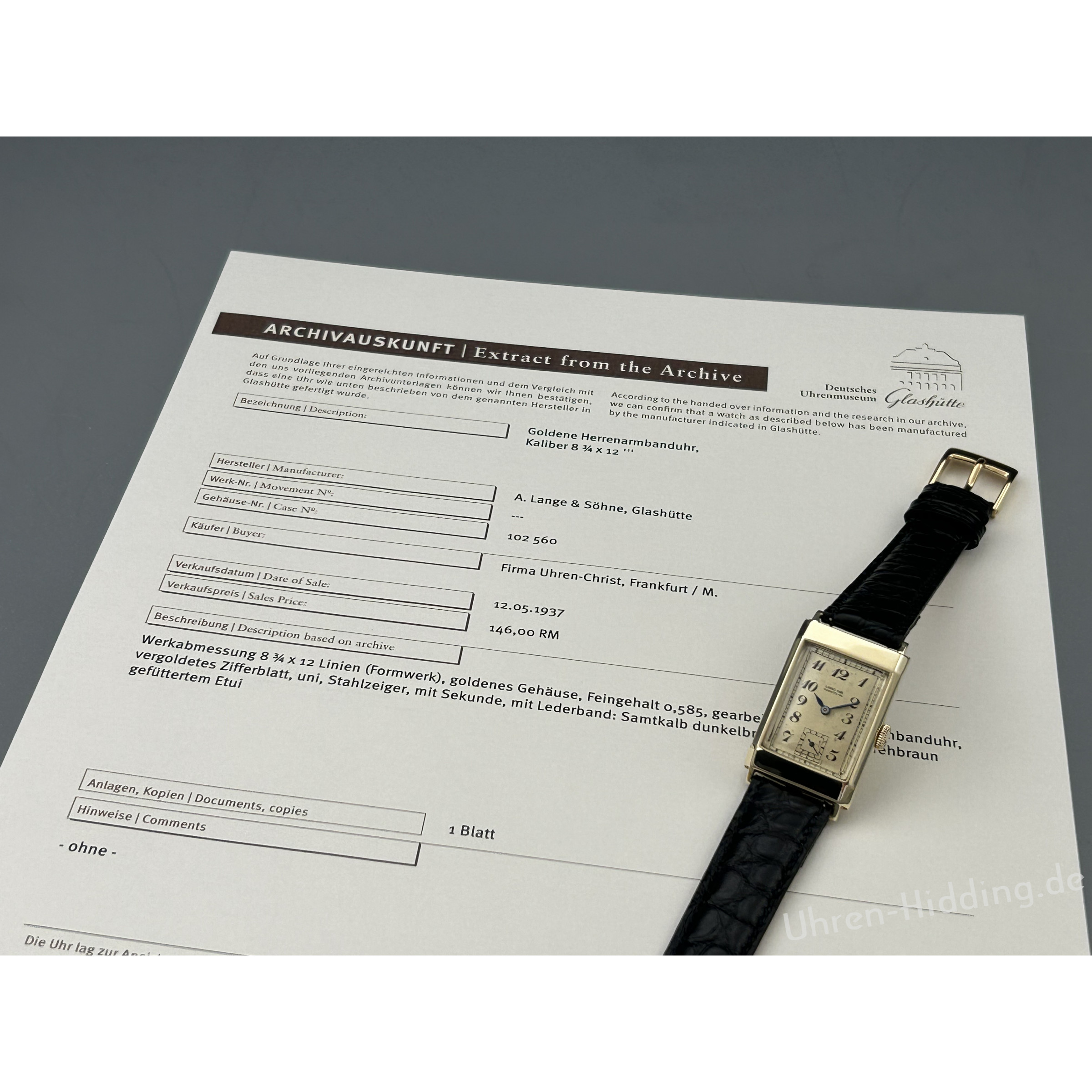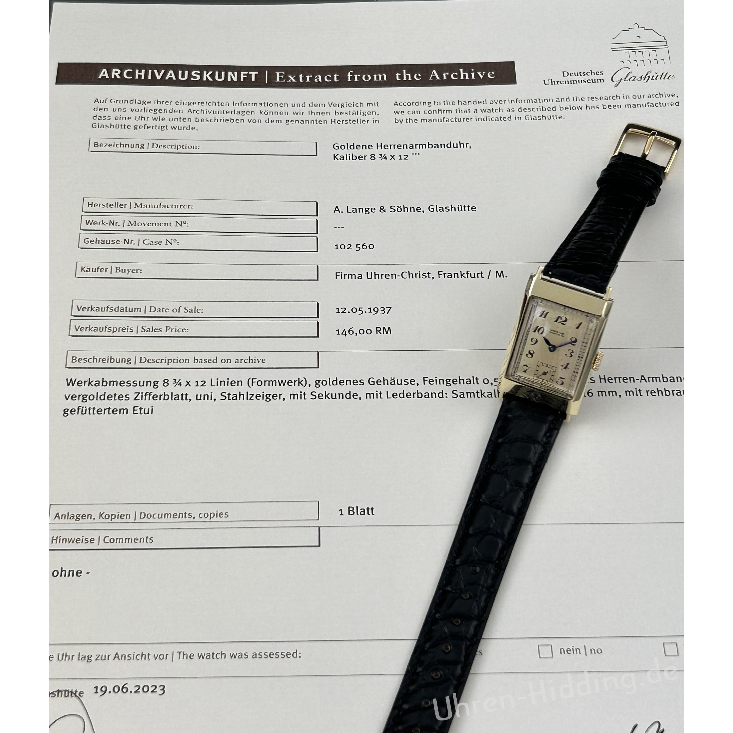 mit Archivauskunft des Deutschen Uhrenmuseums Glashütte