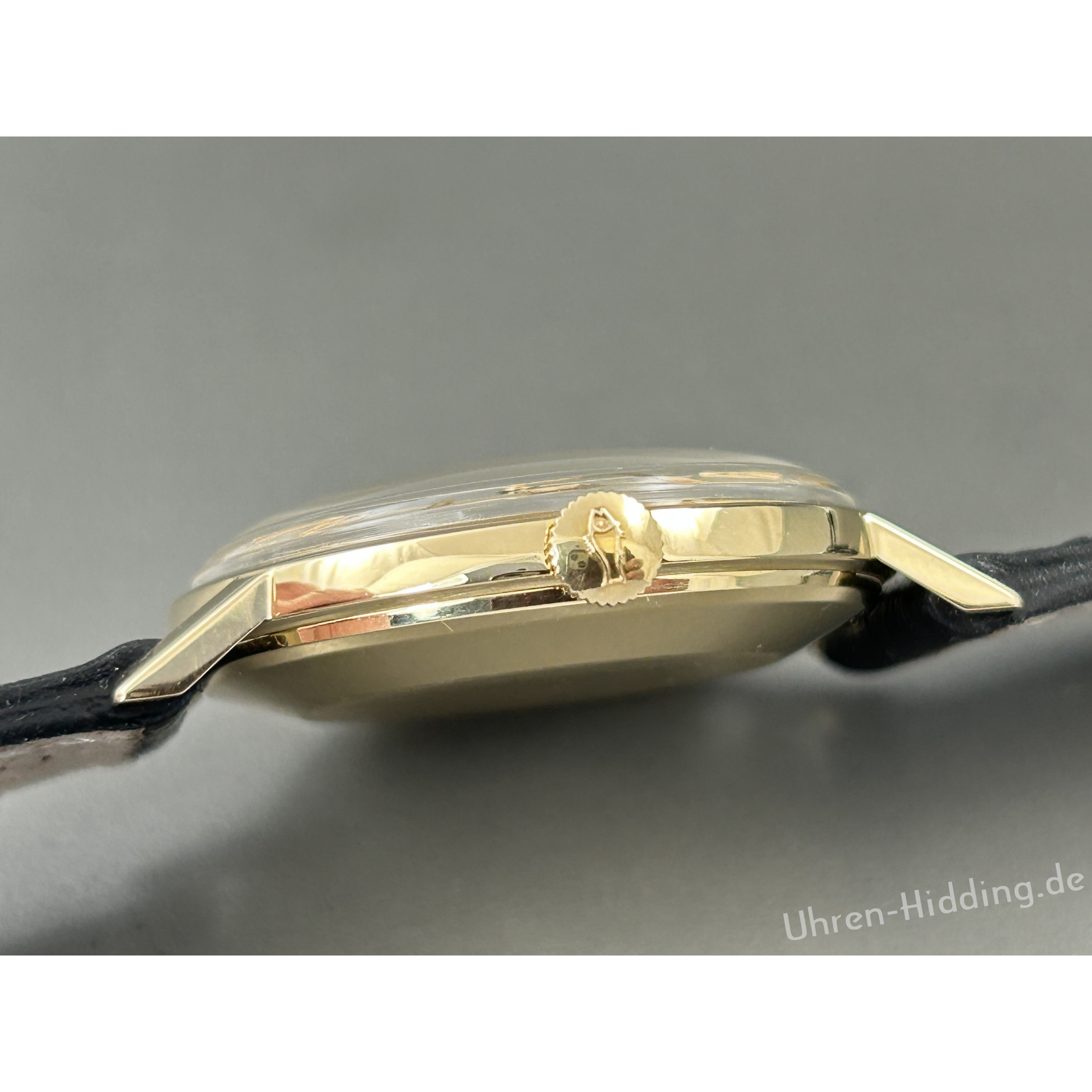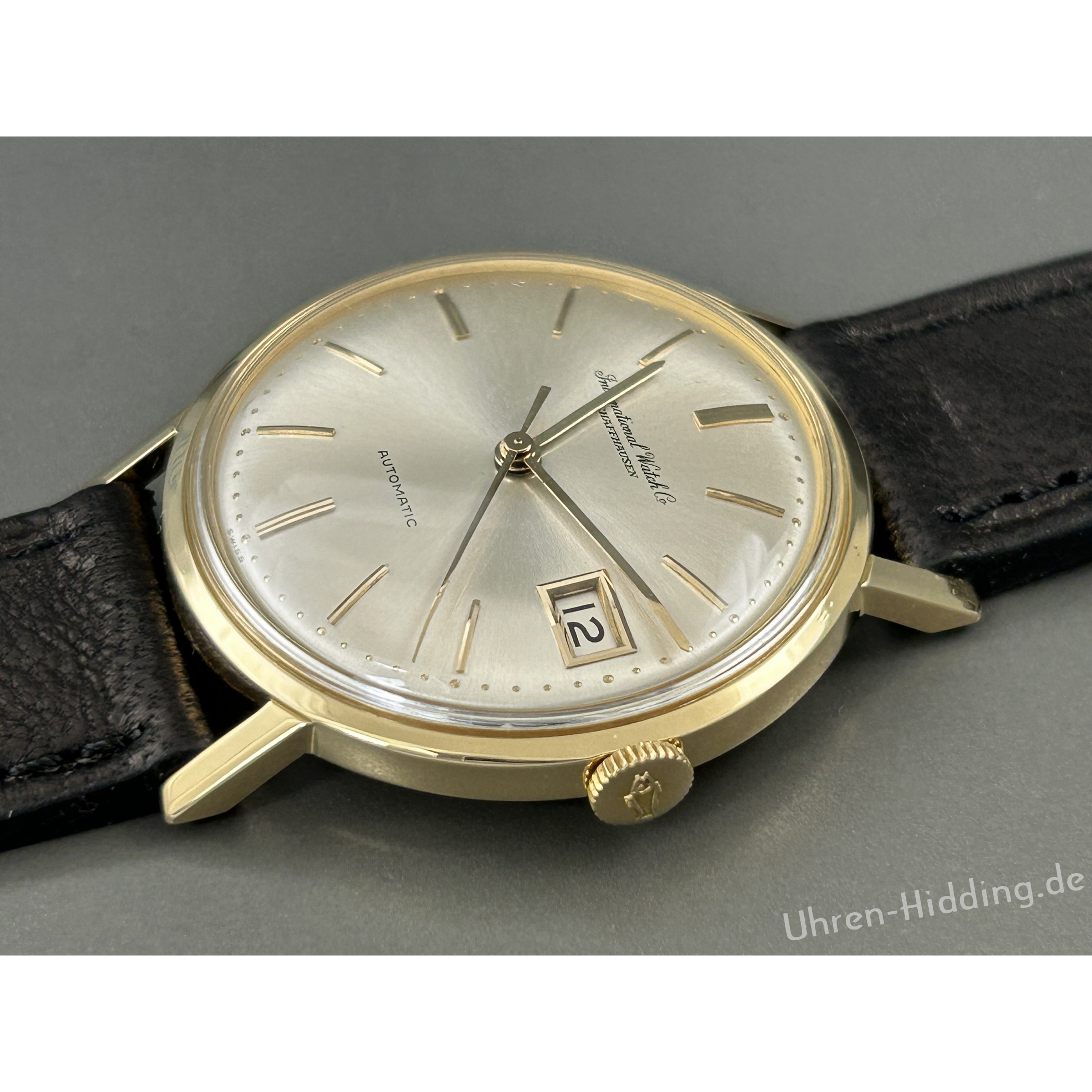 IWC AutomaticRef. R 807Aaround 196318ct-yellow-gold-casesilver-plated dial with setted indexesand Date-Display at 3 o’clockMovement: Automatic Cal. 8541Diameter of case: approx. 35mmbrown-Leather-Strap, 18mm
